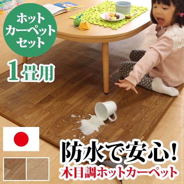【時間指定不可】ホットカーペット カバー 防水 木目調ホットカーペット・カバー 〔ウッディ〕 1畳用(200x98)+ホットカーペット本体 2点セット セット ラグ リビングマット フローリング調 クッション性 抗菌 防カビ 防汚 防水 日本製 床暖房 ペット 子供