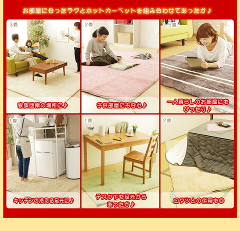 こたつ使用可能春先や秋口など冷え込みの厳しくない時期は、こたつの暖房は切または弱めにしても、ホットカーペットだけで十分温かくなります。